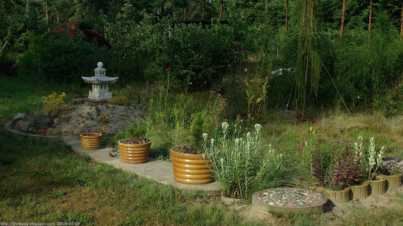Aby ułatwić sobie walkę z miejscowymi agresywnymi roslinami (nie lubię słowa chwasty), część roślin posadziłem w gazonach i donicach z obciętym dnem.